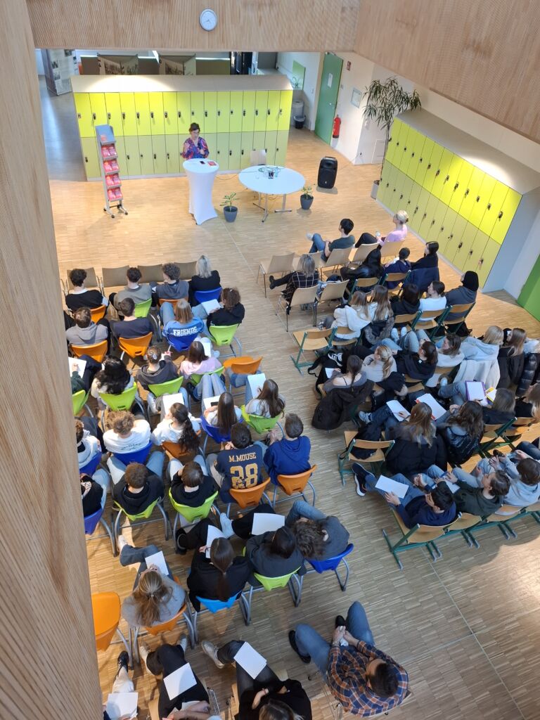 3 Klassen und einige LehrerInnen unserer Schule stellen sich der Herausforderung „3 Wochen ohne Smartphone“ . Als Auftakt zum Experiment hatte wir Petra Trautwein, die Spiegel Bestseller Autorin des Buches „Handyfrei“, zu Gast. Mit ihrem Vortrag stimmte sie die SchülerInnen auf die Challenge ein.