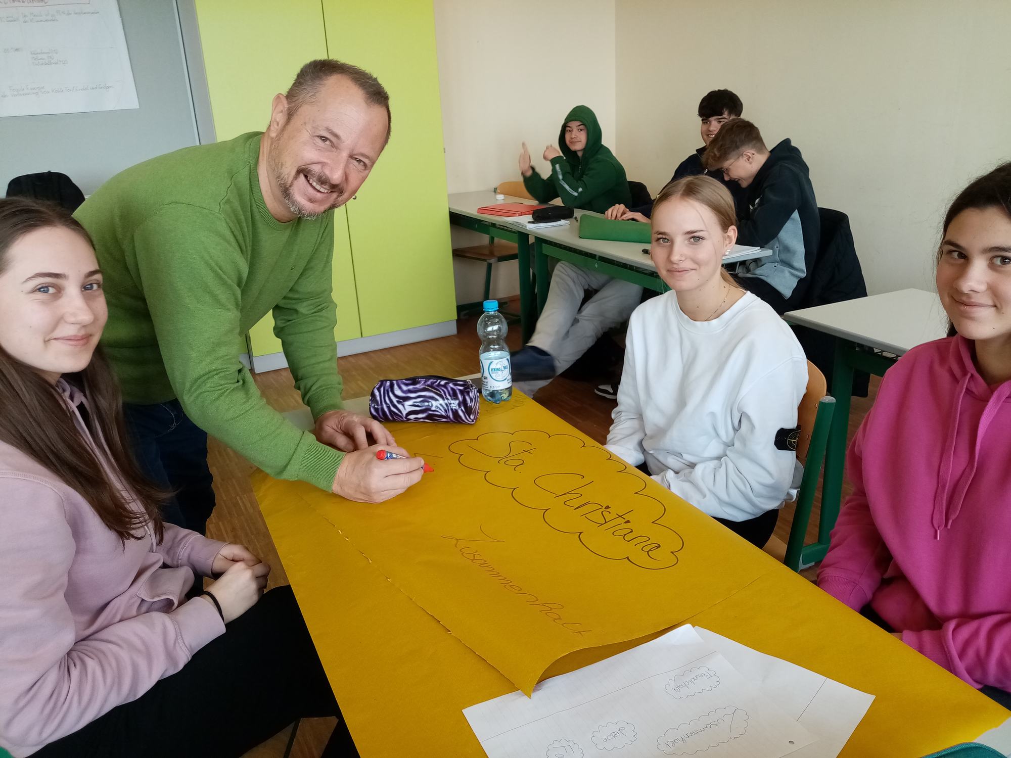 Konkret erfahrbar wird dieser Leitsatz in einzelnen Unterrichtsfächern, an Projekttagen, in einer grundsätzlich wohlwollenden und achtsamen Haltung aller, in der Gestaltung des Schulhauses und in vielen kleinen Momenten im Alltag. Am 15.12., dem traditionellen Sta Christiana Tag, wurde auch das Atrium des Schulgebäudes mit Plakaten zu diesem Thema geschmückt.