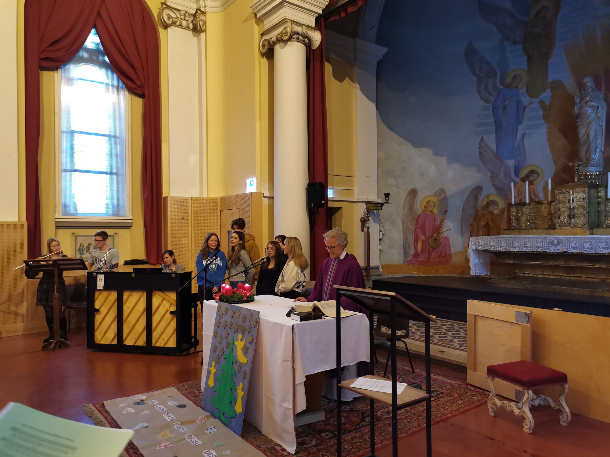 Die Woche endete am Freitag mit unserem Adventgottesdienst, in dem um die Fürsprache der Hl. Nino für unsere Schulgemeinschaft vertrauensvoll gebeten wurde.