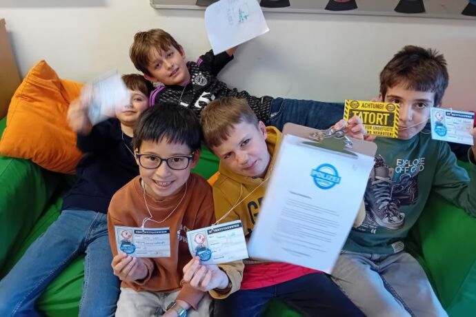 Gemeinsam versuchten Teams der 4. Klassen knifflige Rätsel zu lösen um den Goldraub im Stadtmuseum aufzuklären und den Dieb zu fangen.