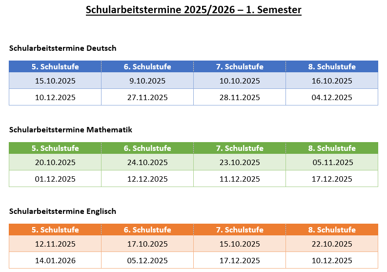 Schularbeitstermine