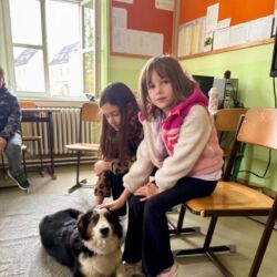 Unsere zwei Schulhunde Siri und Harley besuchen die 1b.