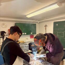 Im Fachpraxisunterricht haben die Schüler:innen heute das Elektrodenschweißen kennengelernt, wodurch sie erste praktische Erfahrungen sammeln konnten. Sie schweißten aus verschiedenen Schrauben Krippenfiguren, die am Ende überraschend kreativ und detailreich aussahen.