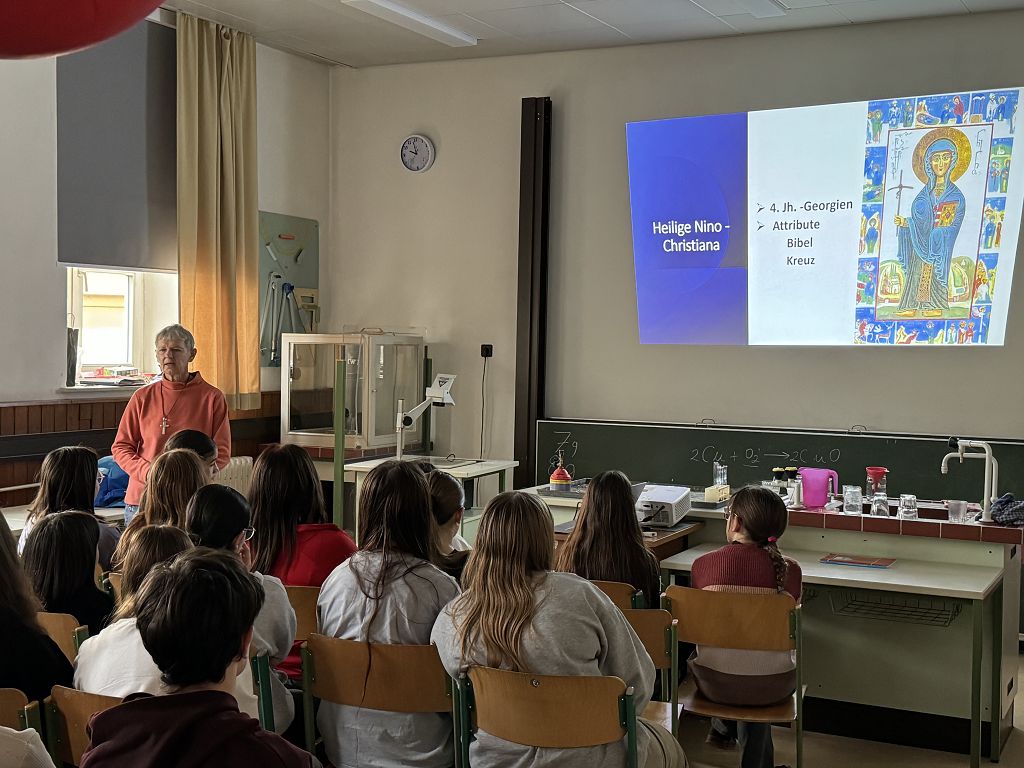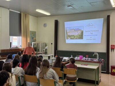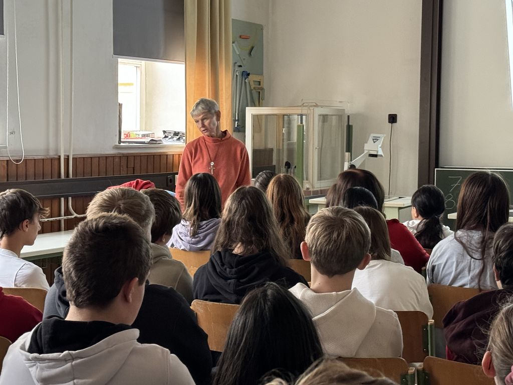 Heute hielt Schwester Nicole einen Vortrag für alle Klassen über die Geschichte der heiligen Christiana.