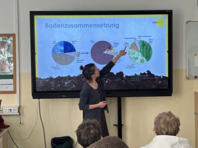 Im Workshop Science Class „Ökosystem Boden“ erkundeten die 3ab das komplexe Ökosystem Boden, wobei Bodenschutz, Bodenbildung und die Vielfalt der Bodenlebewesen im Mittelpunkt standen. Expertinnen erklärten die Funktionen des Bodens, den Kreislauf organischer Stoffe und die Folgen menschlicher Eingriffe, deren Inhalte mit der Durchführung interaktiver Stationen spannend verdeutlicht wurden.