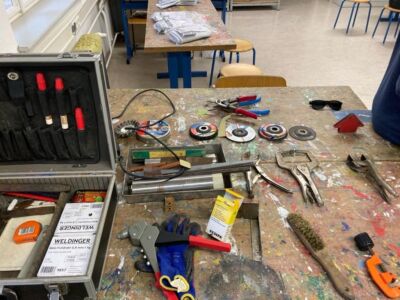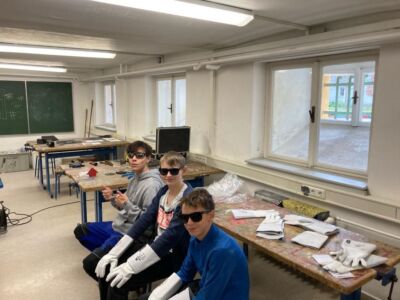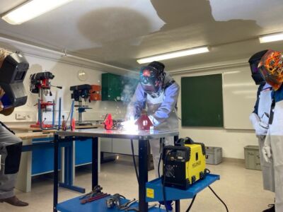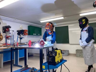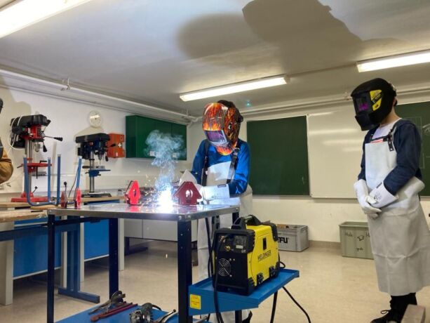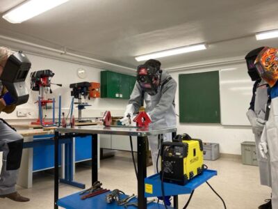 Im Rahmen des Unterrichtsgegenstandes Fachpraxis durften die jungen Mädchen und Burschen am „Fülldraht – Schweißgerät“ erste Erfahrungen sammeln. Nach einer kurzen Einführung und Erklärung der Sicherheitsvorkehrungen ging es auch schon los.