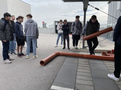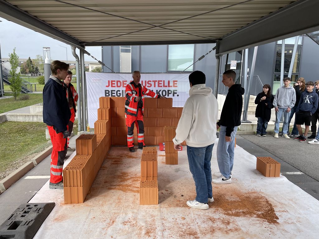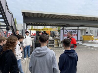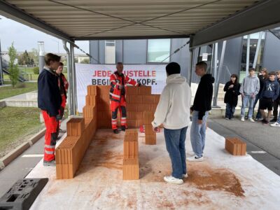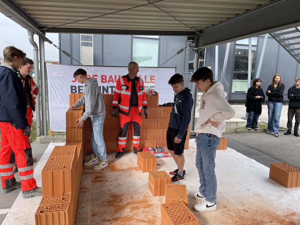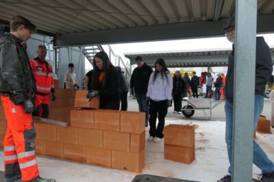 Die SchülerInnen der 4c und der PTS besuchten am 26.4. und am 27.4 die Firma Strabag in Wiener Neustadt. Sie konnten sich dabei Informationen über die Welt des Hoch- und Tiefbaues holen. In eigenen Workshops probierten sie das Pflastern von Wegen, den Schalungsbau sowie das Hochziehen einer Ziegelmauer. Auch die aufwendige Planung von Gebäuden am Computer wurde den SchülerInnen gezeigt und erklärt. Zusätzlich wurden alle mit einer Jause verwöhnt.