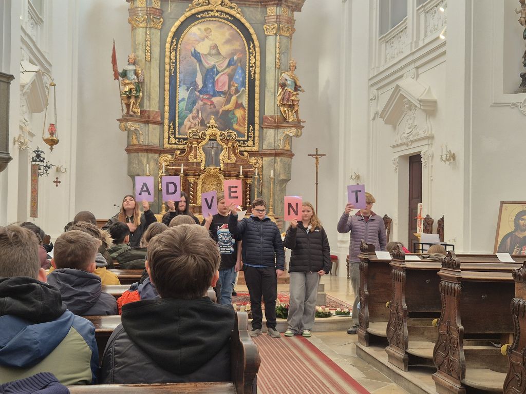 Die 1. Klassen feierten am Freitag die Segnung der Adventkränze in der Vorstadtkirche. „Advent“ bedeutet Ankunft. Wir bereiten uns gemeinsam auf das Weihnachtsfest und die Geburt Christi vor. Jede Woche entzünden wir eine weitere Kerze, um unsere Welt ein Stück heller zu machen. Wir wünschen euch allen eine schöne und besinnliche Adventzeit.