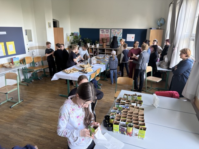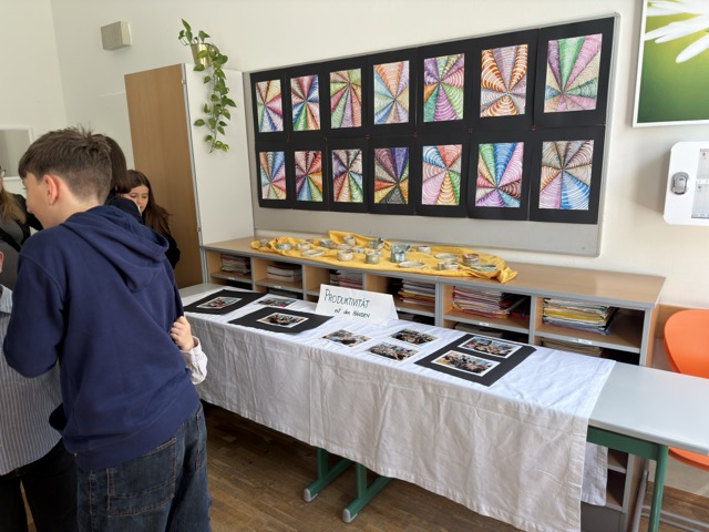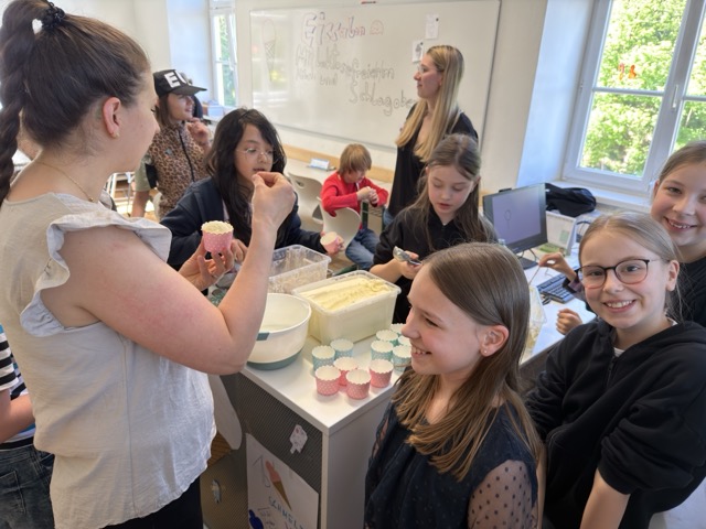 Besonders geschäftig und lebhaft ging es bei unseren jüngsten Schülerinnen und Schülern zu. Die ersten Klassen veranstalteten ihre eigenen Markttage direkt in den Klassenzimmern. Mit großem unternehmerischem Geschick verkauften sie selbst hergestellte Produkte wie selbst gemachtes Eis oder kreativ und individuell bedruckte Geschirrtücher