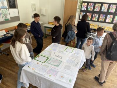 Die Klassenzimmer und Gänge verwandelten sich in eine große Ausstellungsfläche. Unsere Schüler zeigten dabei wie sie sich kritisch und kreativ mit den Themen auseinandergesetzt haben.
