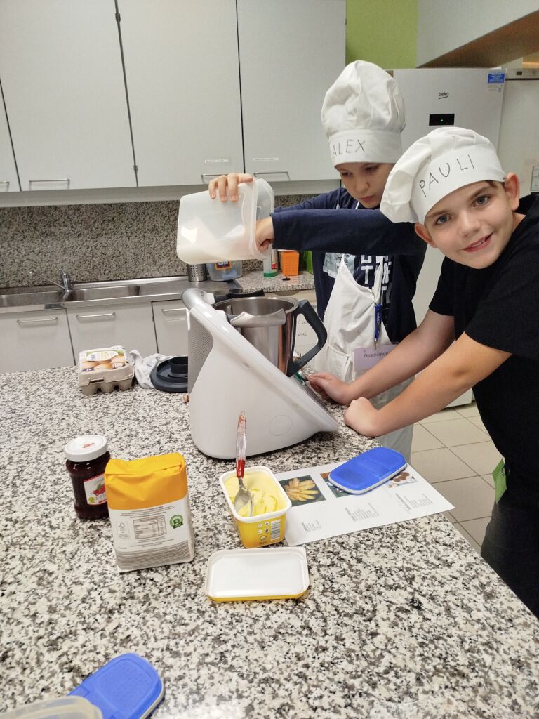 Kekse backen mit dem Thermomix: Ermöglicht durch die Unterstützung des Elternvereins durften unsere Schüler den Umgang mit modernen Haushaltsgeräten kennenlernen. In der unverbindlichen Übung „Iss dich schlau“ entstanden mit dem Thermomix Schokokugeln, Linzer Schnitten und Marzipankekse. Das gemeinsame Backen bereitete viel Freude, die Ergebnisse schmeckten hervorragend und sorgten für eine stimmungsvolle Einstimmung auf die Vorweihnachtszeit.