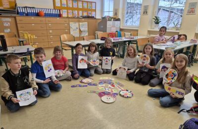 Die Gruppe 1ab hat sich durch das kalte Wetter nicht die Laune verderben lassen. Gemeinsam haben wir bunte Pinguine gebastelt.