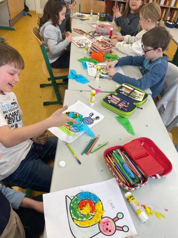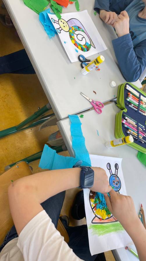 Die 3a hat den hausübungsfreien Nachmittag für Basteleien genutzt. Es wurden aus Krepppapier bunte Schnecken gestaltet und die Kinder konnten dabei ihrer Kreativität freien Lauf lassen.