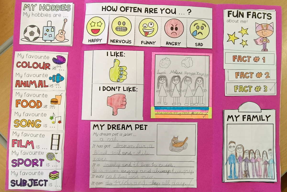 In der Unverbindlichen Übung Fit4English beschäftigten sich die Kinder der 2a mit dem Thema „All about me“ und gestalteten dazu tolle Lapbooks, auf die sie ganz stolz sind.