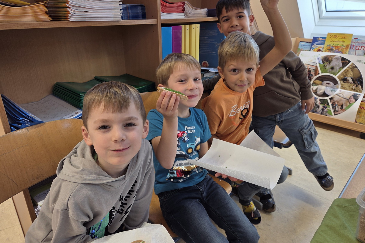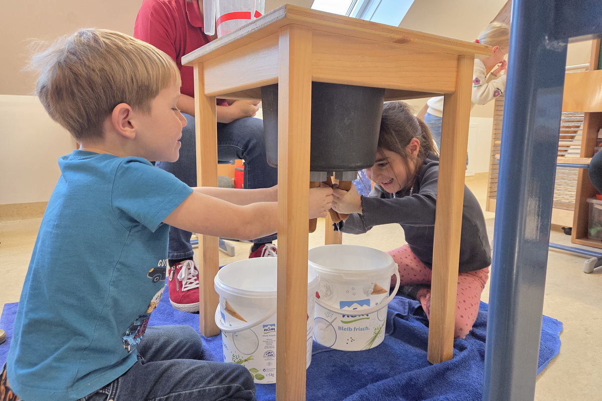 Anschließend durfte jeder und jede selbst Butter schlagen. Mit großem Eifer wurde geschüttelt, bis sich aus dem Schlagobers goldgelbe Butter bildete. Zum Abschluss genossen alle selbstgemachtes Butterbrot, das nach so viel Arbeit besonders gut schmeckte.