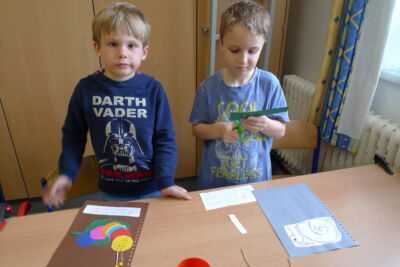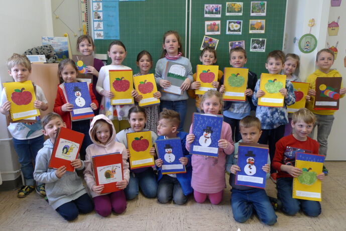 Viele verschiedene Arbeitstechniken gilt es in der ersten Klasse zu erlernen und zu üben. Damit die Werkstücke gesammelt bewundert werden können, gestalten wir heuer ein ganzes Buch.