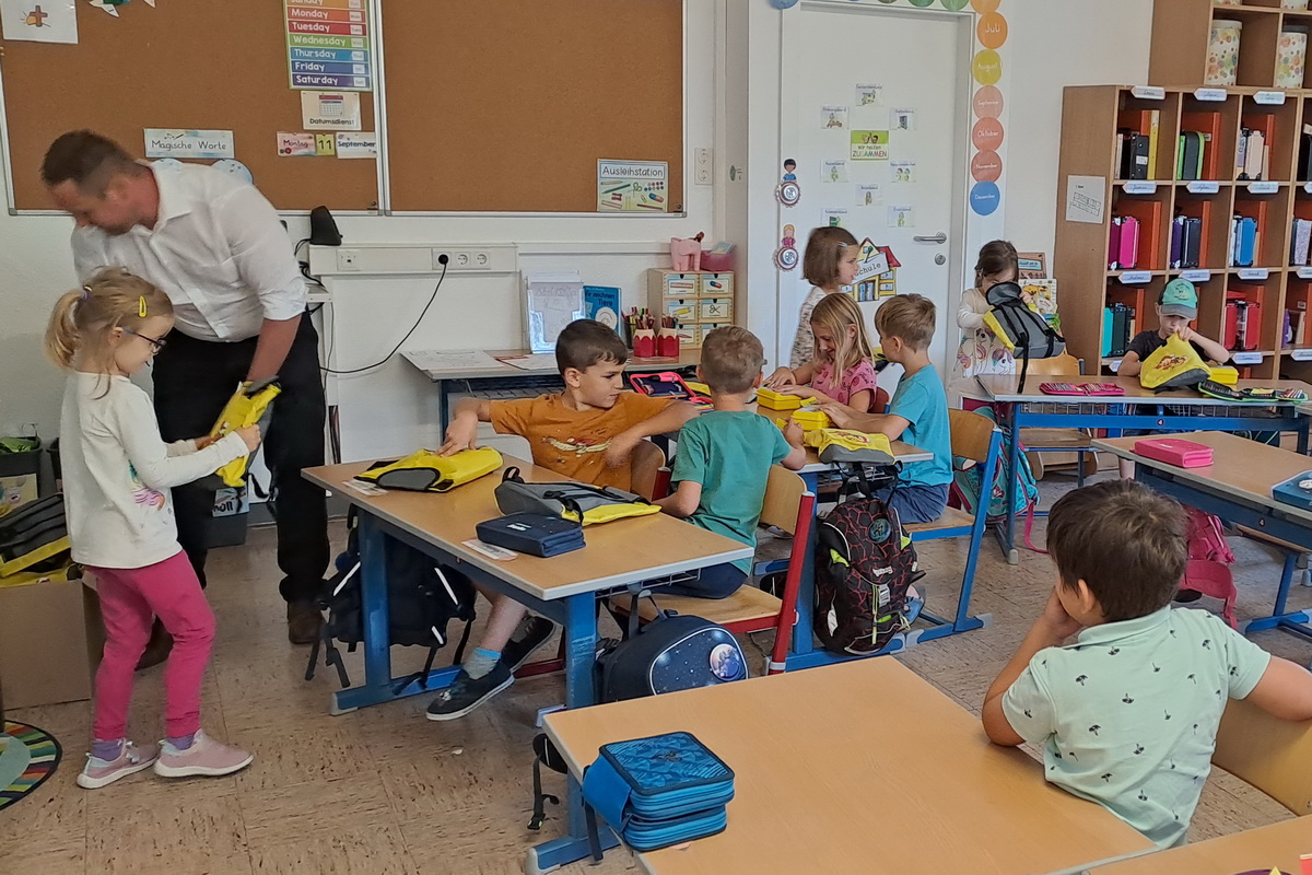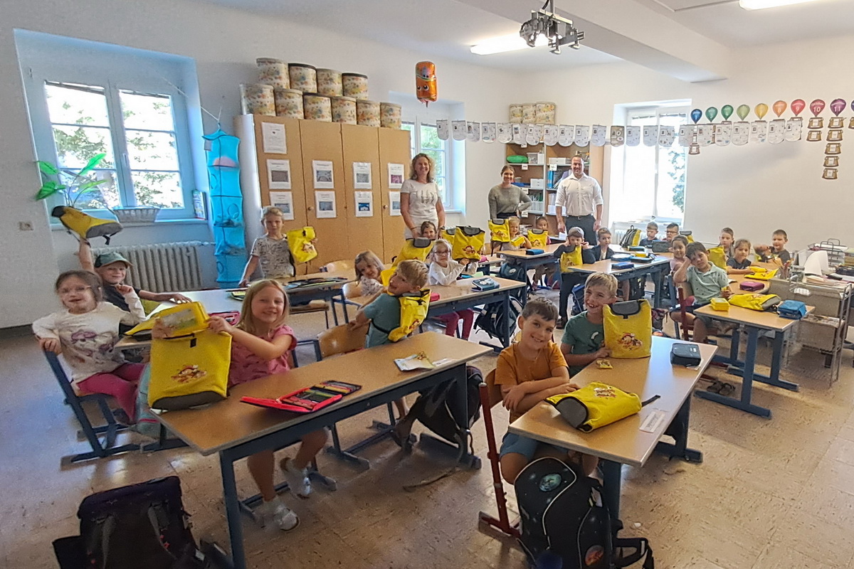 Über Sumsi-Rucksäcke und eine mit Gummibärchen gefüllte Jausenbox durften sich die Taferlklassler freuen.