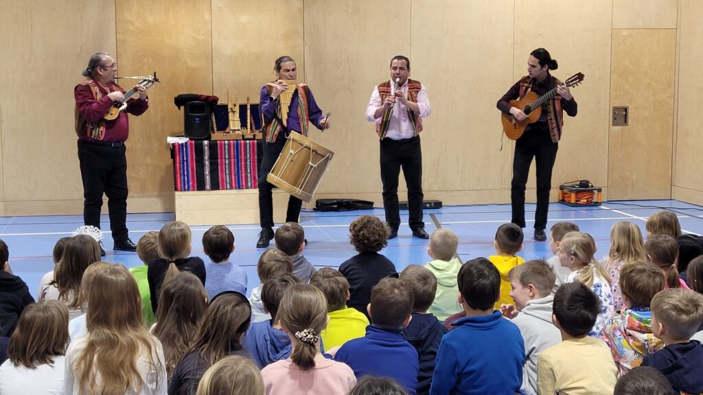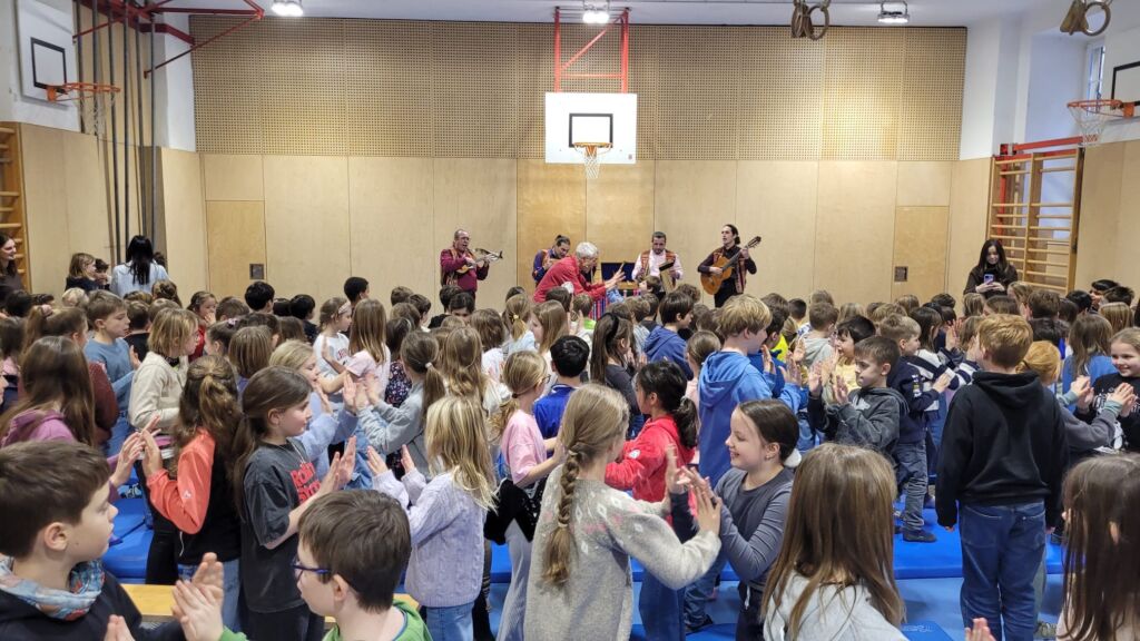 Marko Simsa und seine Band brachten den Zauber und die Lebensfreude von Lateinamerika in unser Schloss. Instrumentenkunde, Einblicke in das Leben in Lateinamerika sowie viel Musik – auch zum Mitmachen – fesselten für eine Stunde alle Kinder als auch Lehrer unser Volksschule.