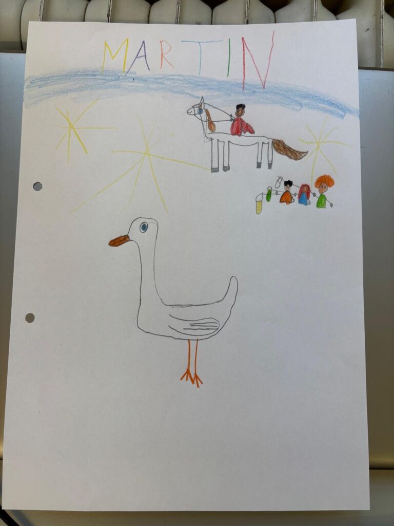 Im röm. kath. Religionsunterricht lernte die 2B den heiligen Martin kennen: Er teilte seinen Mantel und zeigte, wie schön es ist, zu helfen und zu teilen. Auch die schnatternden Gänse durften dabei natürlich nicht fehlen! 🙂