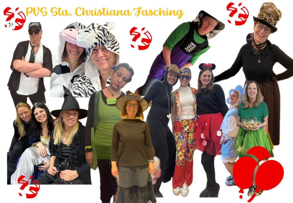 Auch heuer wurde der Fasching in der pVS Sta. Christiana mit viel Freude und Begeisterung gefeiert. Schon am Morgen verwandelte sich die Schule in eine bunte Welt voller Tiere, Prinzessinnen, Superhelden, Künstlerinnen und Fantasiefiguren. Die liebevoll gestalteten Kostüme sorgten für staunende Gesichter und beste Stimmung.