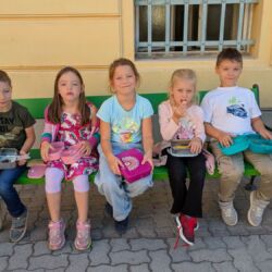 Die erste Schulwoche ist immer besonders spannend. Die Kinder lernen sich und die Regeln in der Schule kennen. Neben den ersten Schwungübungen bleibt in der Pause noch ein bisschen Zeit …