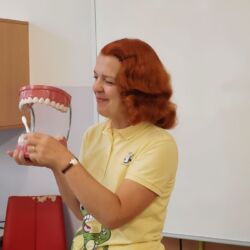 Eben erst in der 1. Klasse angekommen, hatten wir schon Besuch von Kroko, den wir noch vom Kindergarten kannten. Er machte wieder Schabernack und zeigte uns das richtige Zähneputzen.