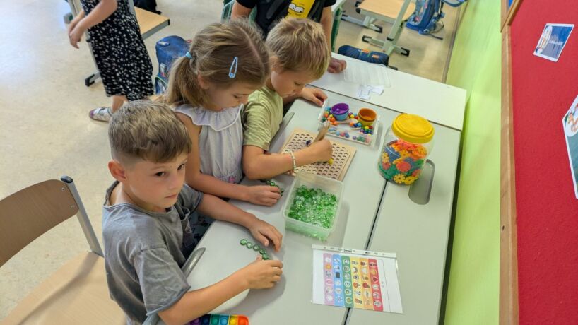Die Kinder der 1a meisterten ihren ersten Stationenbetrieb zum Buchstaben A super. Sie lernten mit einem einfachen Plan zu arbeiten. Die einzelnen Lernstationen machten ihnen großen Spaß. Anschließend gab es eine wohlverdiente Hofpause.