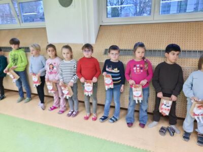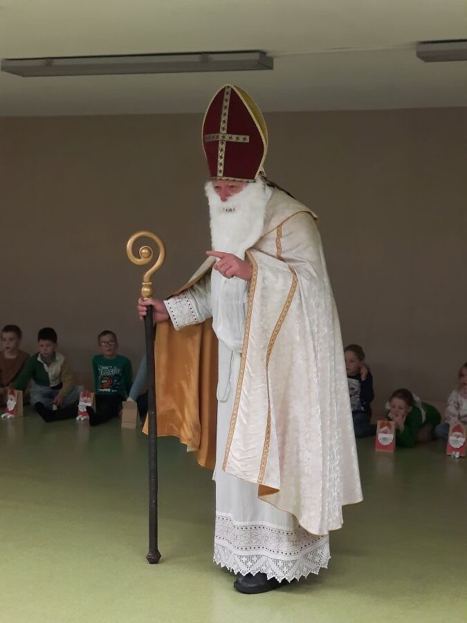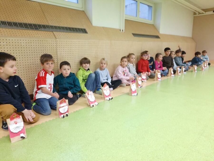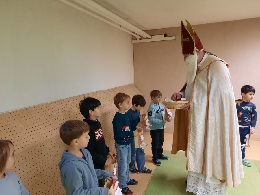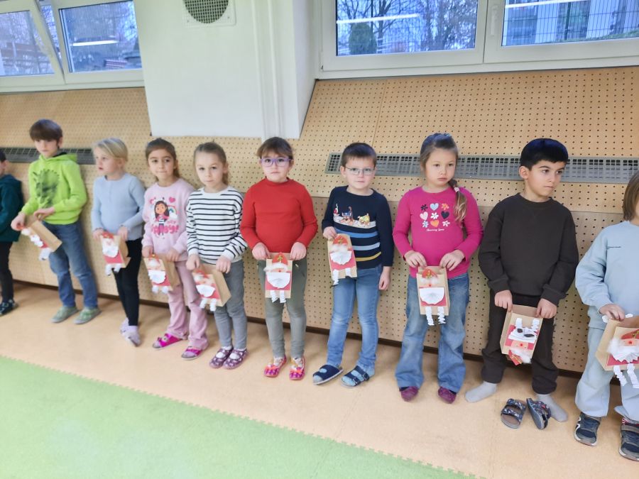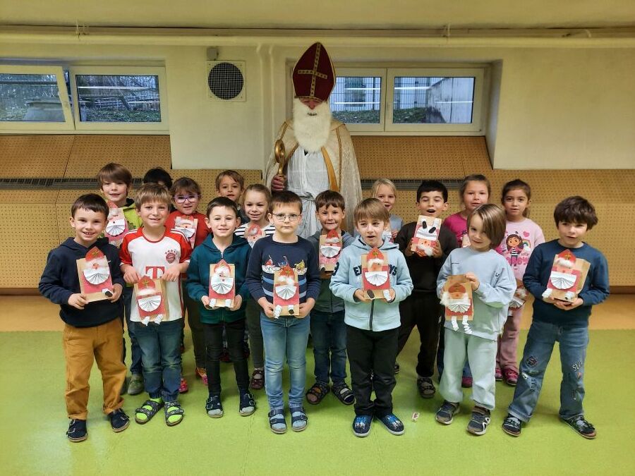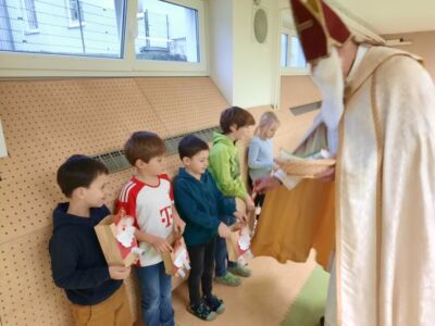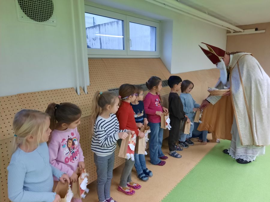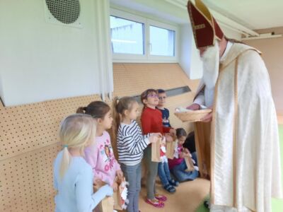 In der Adventzeit ließ es sich der Nikolaus nicht nehmen uns zu besuchen. Nachdem er über sich erzählt hatte, sagten ihm die Kinder ein Nikolausgedicht auf. Danach wurden die selbstgebastelten Säckchen befüllt.
