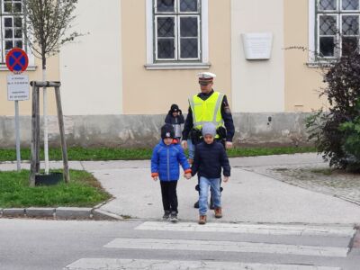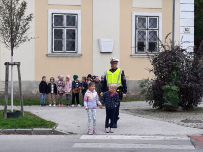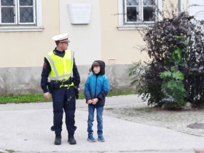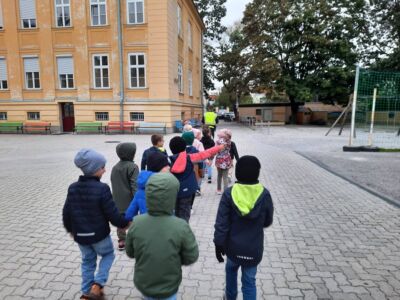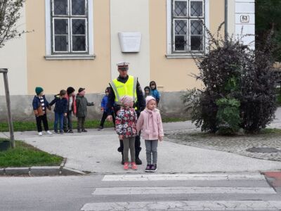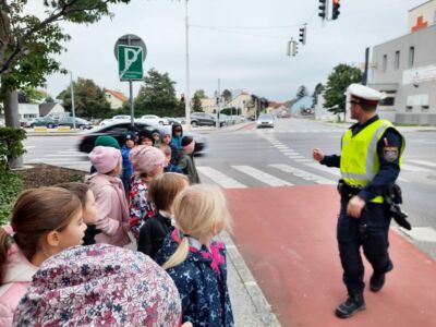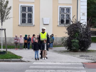 Passend zum Schulanfang und zur Verkehrserziehung erforschten wir die Kreuzungen um unsere Schule und übten das richtige Überqueren. Dabei bekamen wir Hilfe und Anleitung durch einen netten Polizisten.