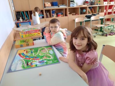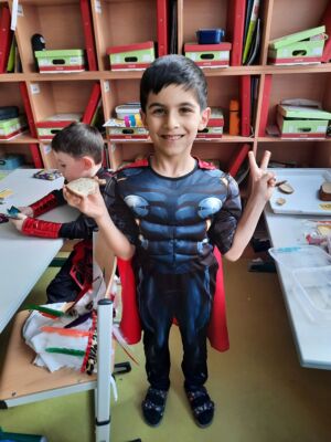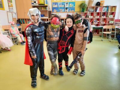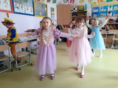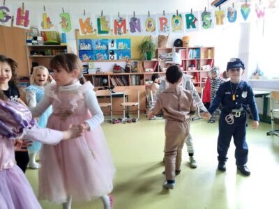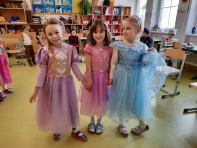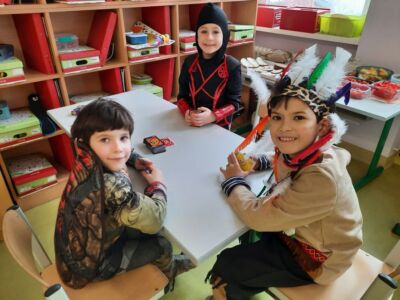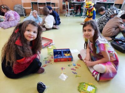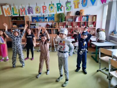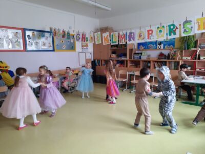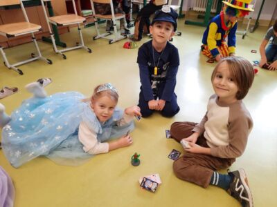 Nachdem wir einen neuen Buchstaben gelernt hatten, setzten wir unser Klassenfaschingsfest bei Jause, Spielen und Tanz fort.