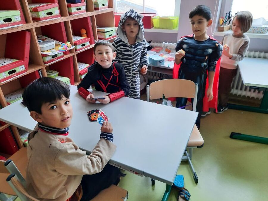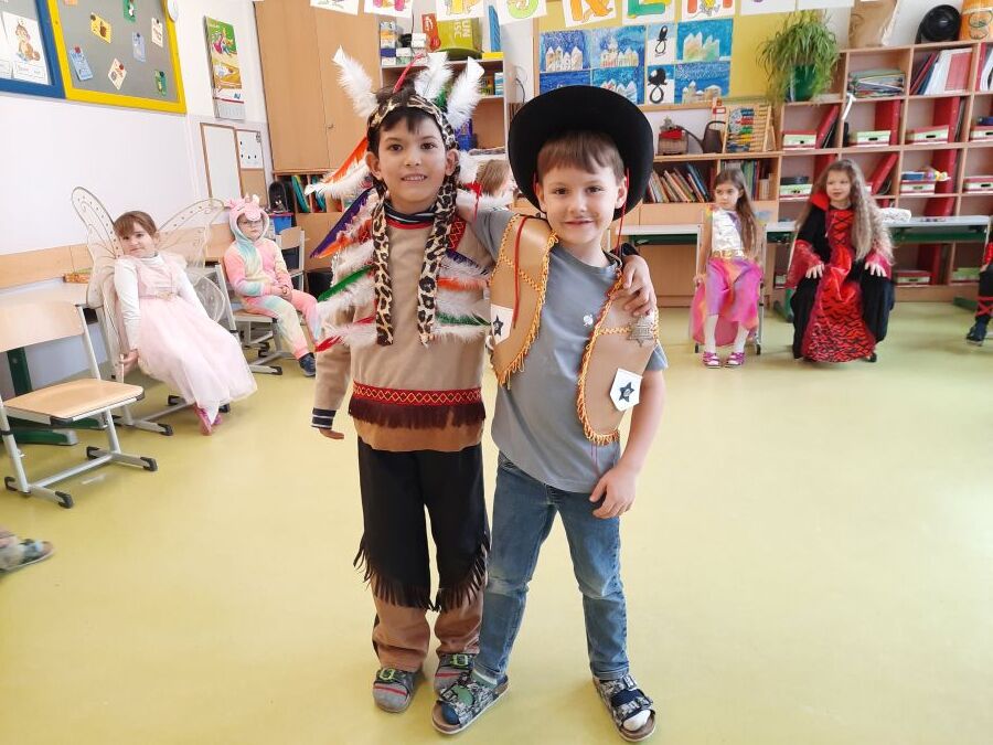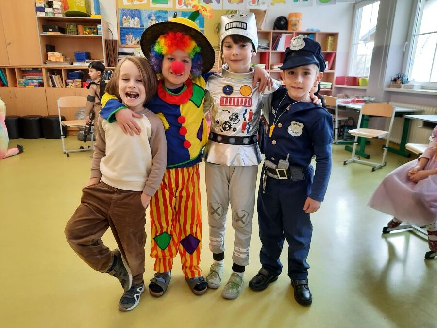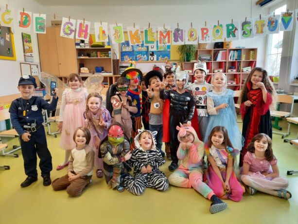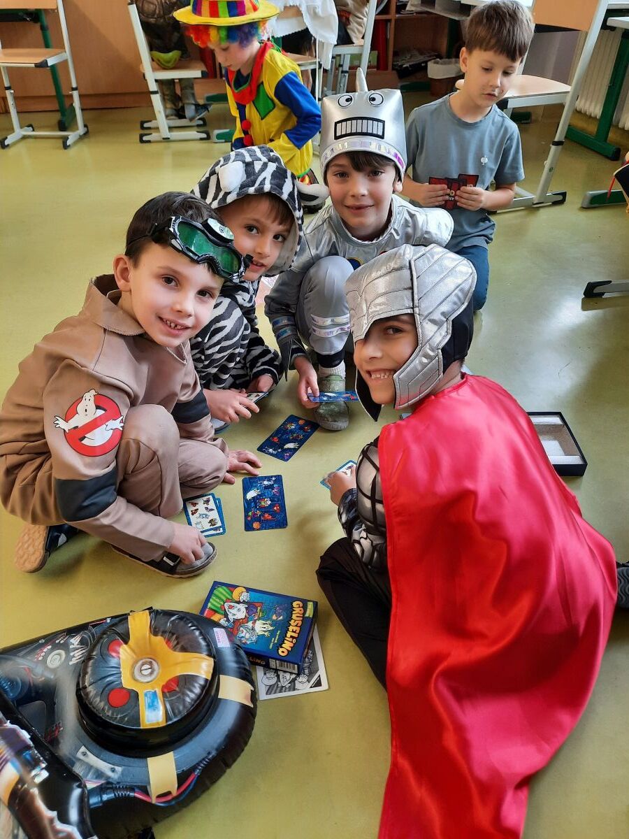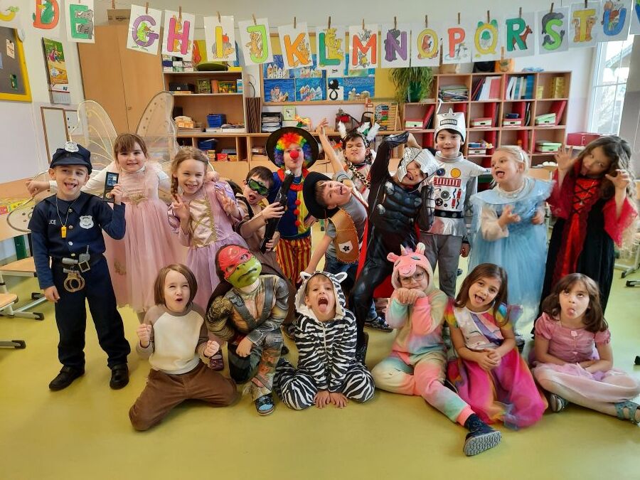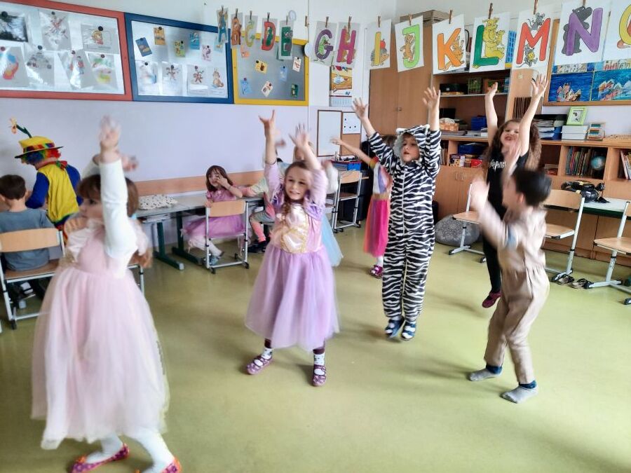Nachdem wir einen neuen Buchstaben gelernt hatten, setzten wir unser Klassenfaschingsfest bei Jause, Spielen und Tanz fort.