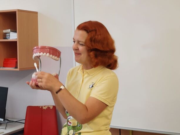 Eben erst in der 1. Klasse angekommen, hatten wir schon Besuch von Kroko, den wir noch vom Kindergarten kannten. Er machte wieder Schabernack und zeigte uns das richtige Zähneputzen.