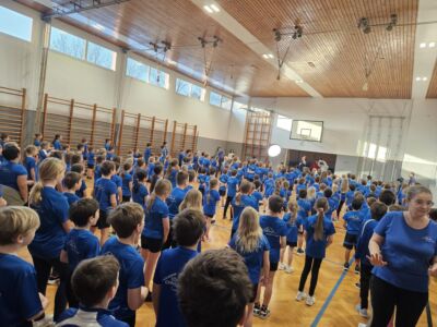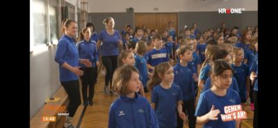…. uns alle! 260 Kinder turnten begeistert und motiviert mit Philipp Jelinek in unserem Turnsaal und wurden dabei auch noch live im Fernsehen übertragen – was für eine Aufregung, was für ein Spaß!