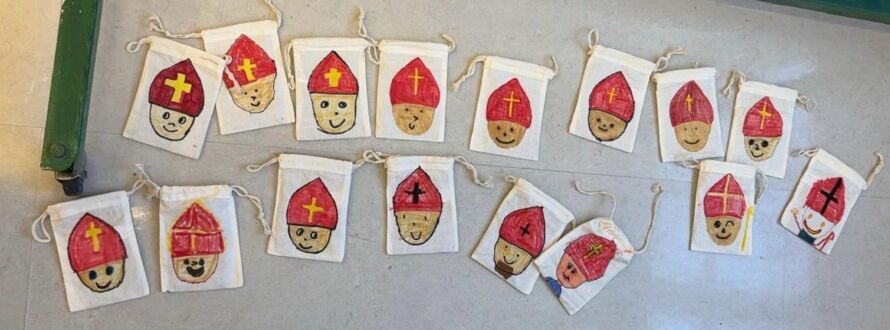Im Werkunterricht gestalteten die 3. Klassen liebevolle Nikolaussackerl. Diese wurden mit einem Bild des Hl. Nikolaus bemalt und auf der Rückseite kreativ verziert. Auf zauberhafte Weise fanden die Schüler*innen ihre Sackerl am Krampustag befüllt mit einer kleinen Nascherei wieder in ihrem Klassenzimmer vor. Ob da wohl der Hl. Nikolaus seine Finger im Spiel hatte?