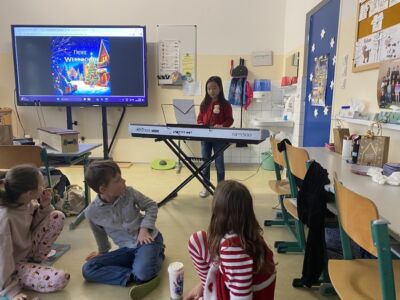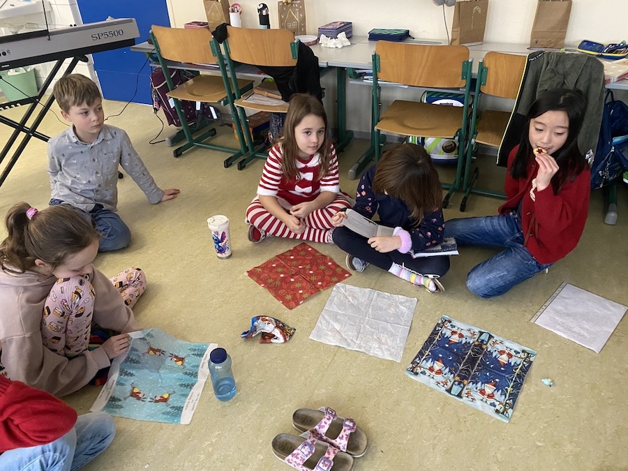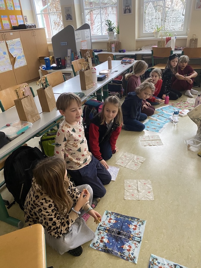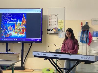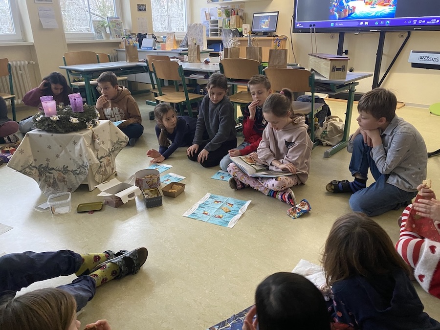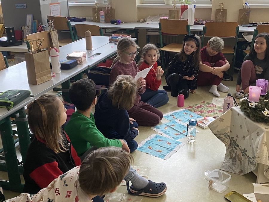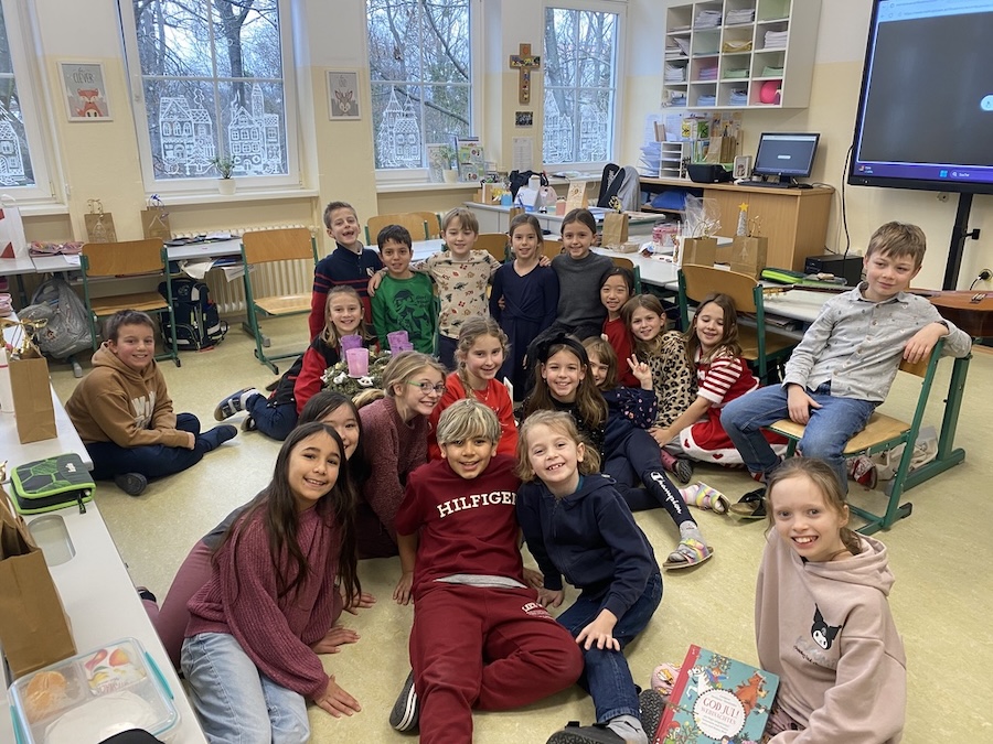 Am 23. Dezember 2025 fand unsere Klassenweihnachtsfeier mit Beiträgen der Kinder statt. Sie lasen Gedichte und Geschichten vor, spielten auf ihren Instrumenten, sagten Gedichte auf und es wurde auch ein Lied vorgesungen. Die Kinder lauschten andächtig und knabberten nebenbei mitgebrachte, köstliche Kekse. Es war eine stimmungsvolle Feierstunde vor den Weihnachtsferien.