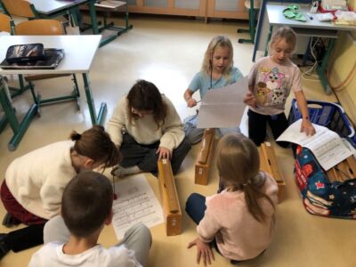 Natürlich besteht unser Alltag nicht nur aus Ausflügen. Dazwischen arbeiten wir auch sehr fleißig z.B. im Computerraum oder in unserer Lernwerkstatt. Auch das Musizieren und Tanzen kommen nicht zu kurz.