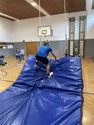 In den vergangenen Wochen hat die Klasse 4a vielfältige Bewegungsstationen erprobt. Dabei konnten die Schüler*innen spielerisch ihre Geschicklichkeit, Kraft und Ausdauer trainieren. Ein Schwerpunkt lag ebenso auf Übungen, die für einige Kinder im Hinblick auf Aufnahmeprüfungen an weiterführenden Sportschulen besonders relevant waren.