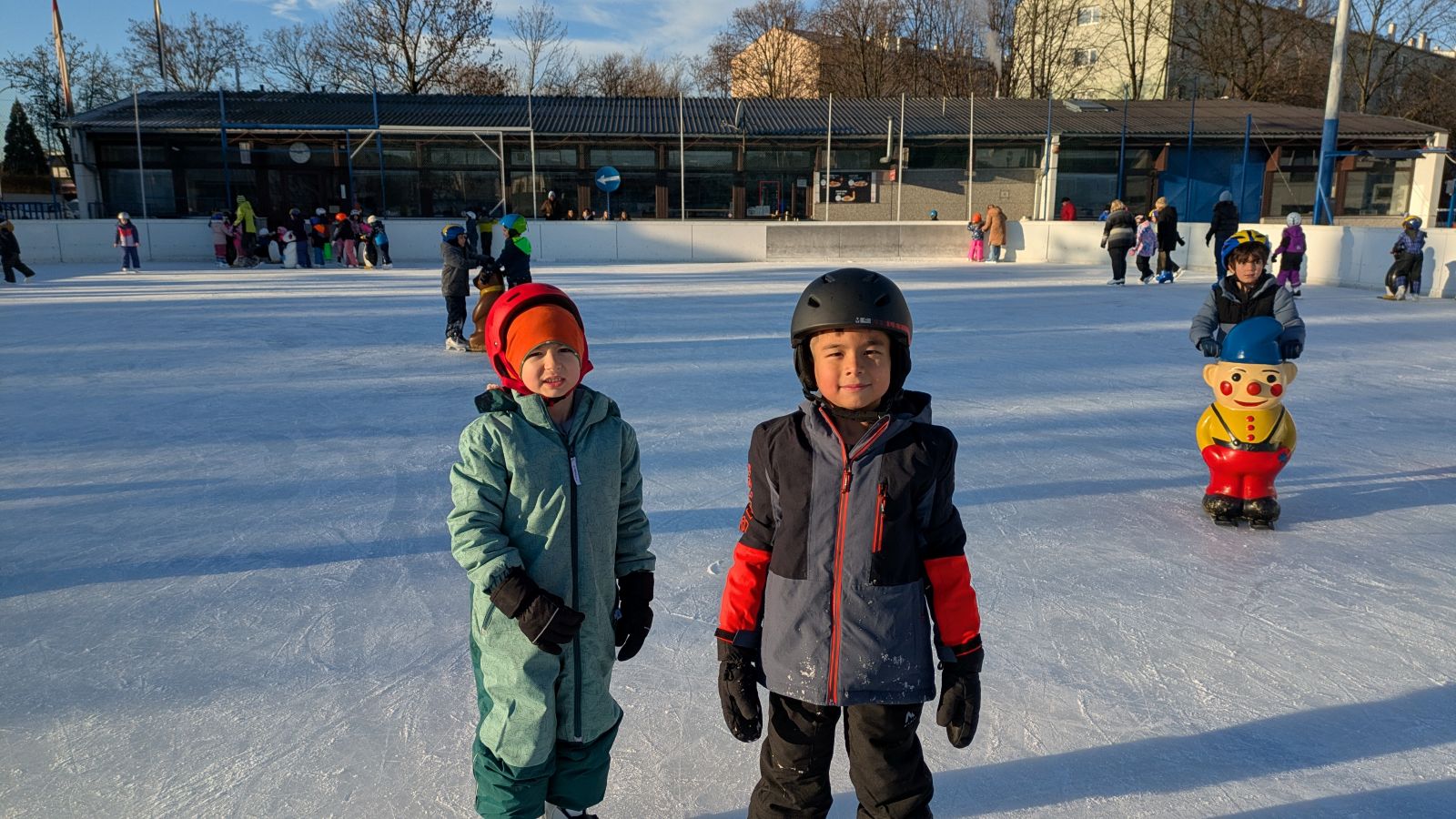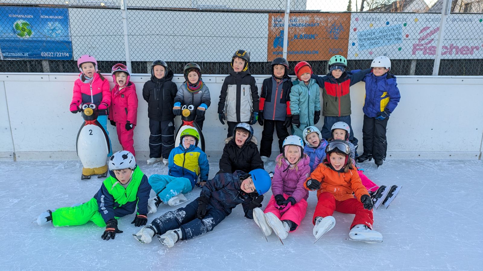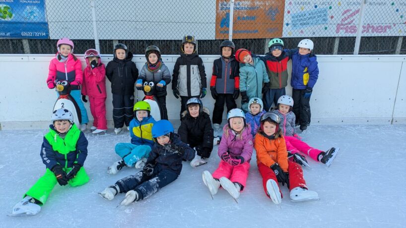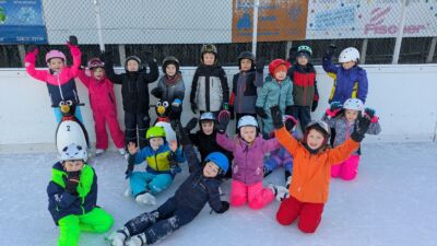 Die Kinder der 1a gehen fleißig eislaufen. Alle zwei Wochen wagen sie sich aufs Eis. Die meisten Kinder drehen schon große Runden. Das wichtigste ist der Spaß an der Bewegung.