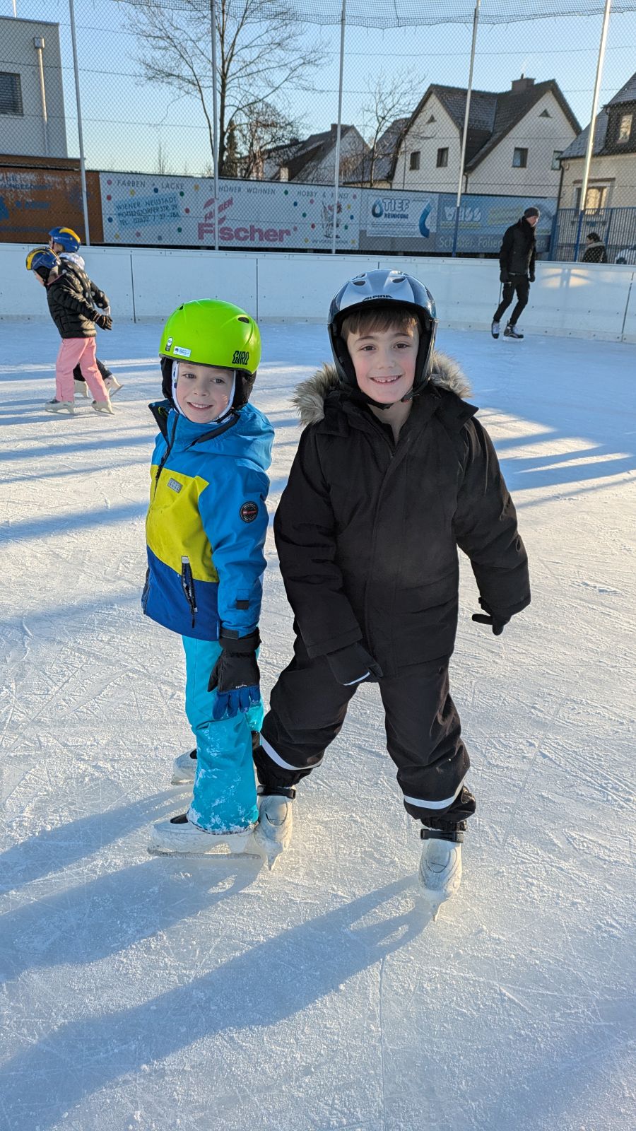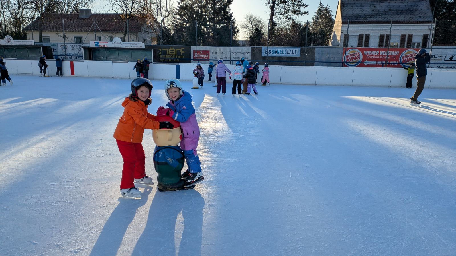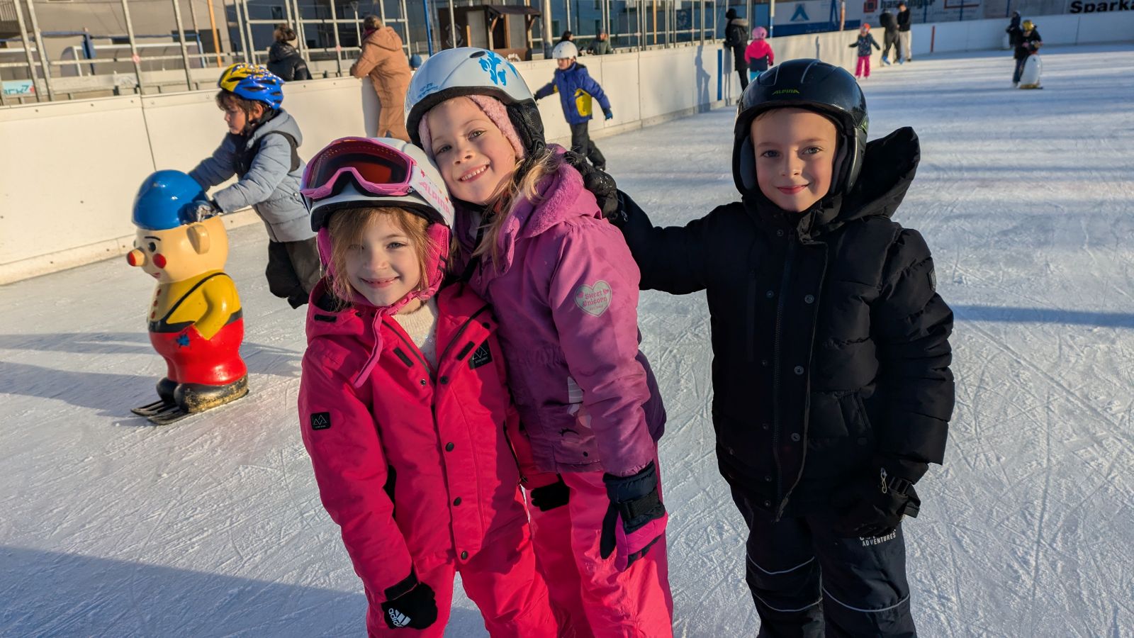 Die Kinder der 1a gehen fleißig eislaufen. Alle zwei Wochen wagen sie sich aufs Eis. Die meisten Kinder drehen schon große Runden. Das wichtigste ist der Spaß an der Bewegung.