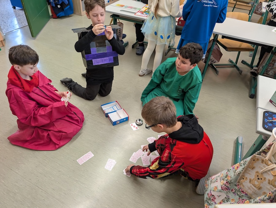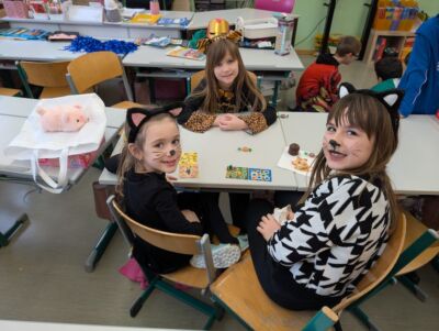 Den Beginn machte am Faschingsdienstag eine Schulversammlung, bei der die Kinder nicht nur den üblichen Ablauf hatten, sondern auch tanzten und Talente herzeigten. Im Anschluss wurde gelernt und dann als Abschluss des Tages wurden Krapfen, Kekse und Schwedenbomben gegessen und miteinander gespielt. Den Kindern hat dieser Tag großen Spaß gemacht.