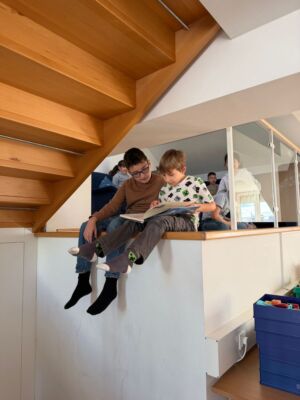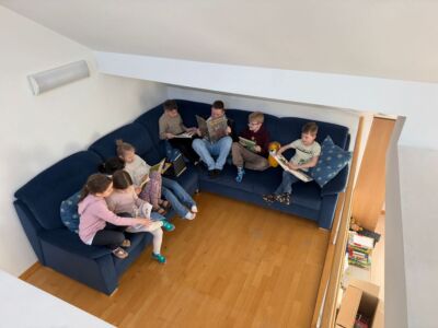 Unsere Schule verfügt über eine große eigene Schulbibliothek. Diese haben wir dazu genutzt, um unsere Freude am Lesen zu erweitern. Zwischen Sachbüchern und spannenden Geschichten haben wir gestöbert und uns ein passendes Buch für jeden Einzelnen gefunden. Diese haben wir dann alleine, zu zweit oder in Gruppen gelesen. Unsere Bibliothek bietet dafür ausreichend Platz mit vielen verschiedenen Sitzmöglichkeiten.