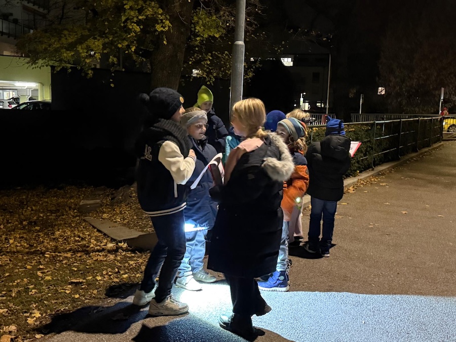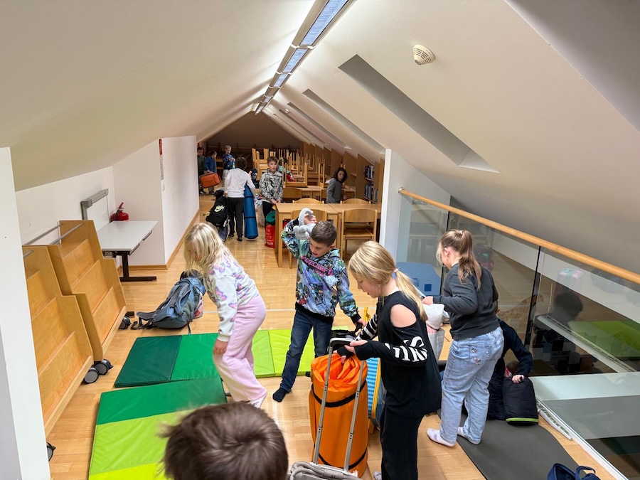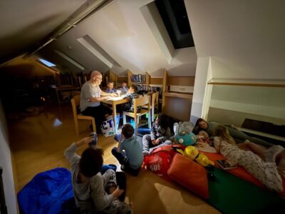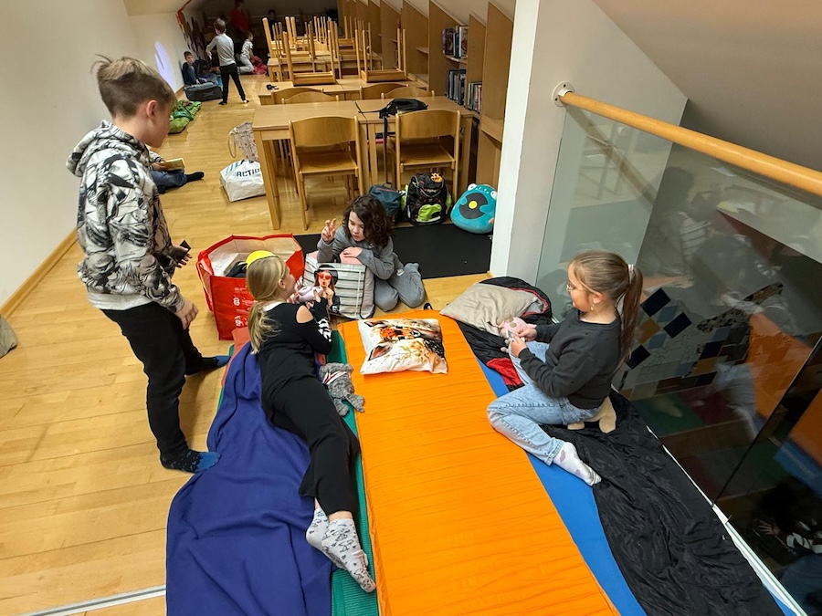Unsere Lesenacht fand am 20. November in der Schule statt. Wir trafen uns am späten Nachmittag und schlugen unser Schlaflager in der Schulbibliothek auf. Gemeinsam machten wir einen Spaziergang mit Taschenlampen und lösten dabei die „Vorstadtrallye“. Anschließend gab es Pizza im Speisesaal.