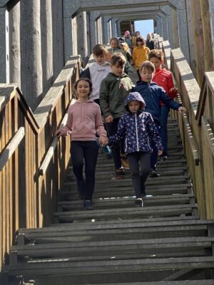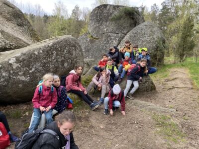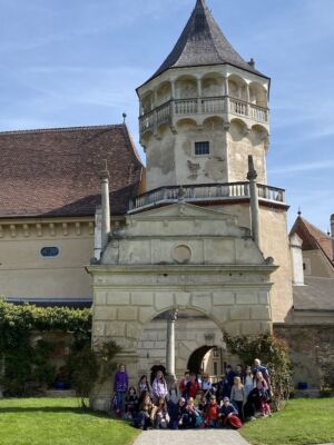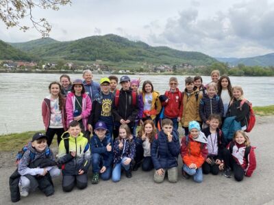 Von 02.05. – 05. 05. 2023 verbrachten die Kinder der 4b mit ihrer Lehrerin und Sr. Nicole gemeinsam mit der 4c wunderschöne, spannende, erlebnisreiche Projekttage im Waldviertel. Übernachtet wurde im Märchenhotel Nebelstein. Bei der Anreise fuhren wir mit dem Schiff auf der Donau von Krems nach Dürnstein, danach schürften wir in der Amethyst Welt nach Amethysten und erfuhren in einer Führung viel zu diesem Gestein. Am zweiten Tag zogen wir Kerzen, stellten Seife her und bemalten Keramik in der HUKI Kinderwelt und wanderten nach dem Mittagessen durch die Blockheide und lauschten den spannenden Sagen. Am Abend genossen wir noch ein Lagerfeuer. Am dritten Tag besuchten wir die UnterWasserWelt in Schrems, sahen bei der Fischotterfütterung zu, fischten Tierchen aus dem Tümpel und erforschten die kleinen Wasserbewohner mit dem Mikroskop. Anschließend ging es zur Kristallschleiferei. Hier durfte jedes Kind ein Glas mit einer Blume versehen. Danach tobten wir uns auf dem Motorikpark so richtig aus. Im Hotel erwartete uns am Abend eines der Highlights – der Discoabend. Am nächsten Tag besuchten wir noch die Rosenburg und die Greifvogelshow. Am Nachmittag waren wir gegen 15 Uhr wieder bei der Schule und wurden von den Eltern herzlich in Empfang genommen. Wir werden diese Tage noch lange in schöner Erinnerung behalten.
