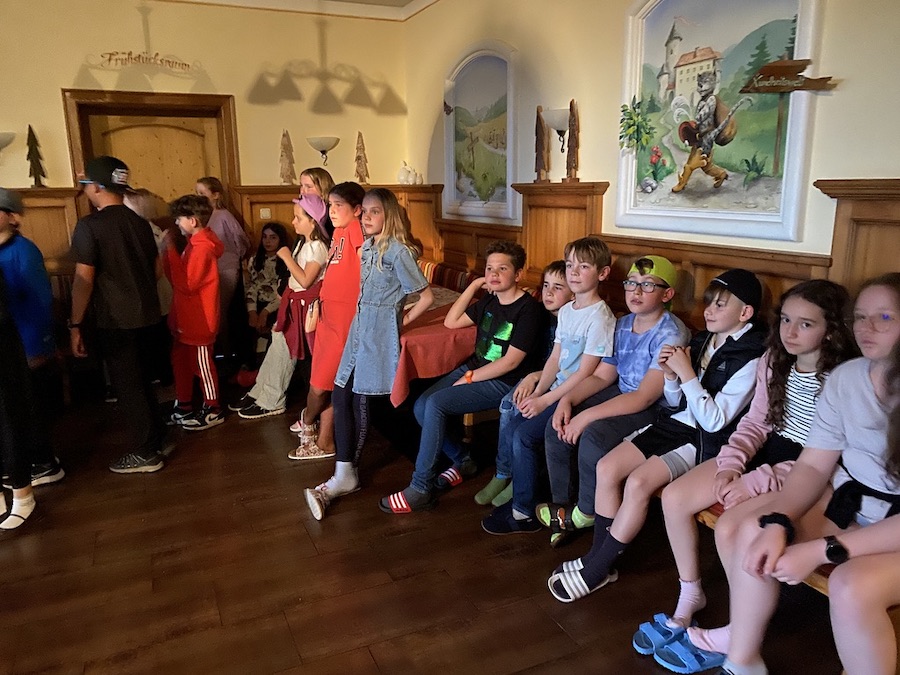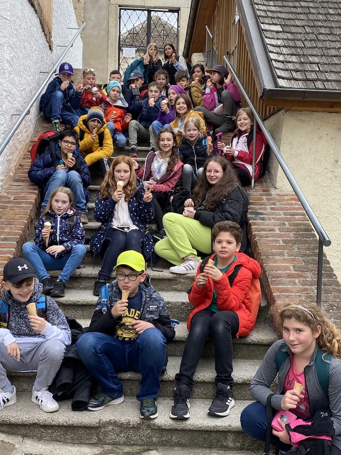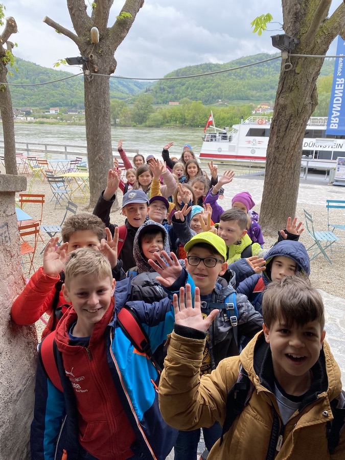 Von 02.05. – 05. 05. 2023 verbrachten die Kinder der 4b mit ihrer Lehrerin und Sr. Nicole gemeinsam mit der 4c wunderschöne, spannende, erlebnisreiche Projekttage im Waldviertel. Übernachtet wurde im Märchenhotel Nebelstein. Bei der Anreise fuhren wir mit dem Schiff auf der Donau von Krems nach Dürnstein, danach schürften wir in der Amethyst Welt nach Amethysten und erfuhren in einer Führung viel zu diesem Gestein. Am zweiten Tag zogen wir Kerzen, stellten Seife her und bemalten Keramik in der HUKI Kinderwelt und wanderten nach dem Mittagessen durch die Blockheide und lauschten den spannenden Sagen. Am Abend genossen wir noch ein Lagerfeuer. Am dritten Tag besuchten wir die UnterWasserWelt in Schrems, sahen bei der Fischotterfütterung zu, fischten Tierchen aus dem Tümpel und erforschten die kleinen Wasserbewohner mit dem Mikroskop. Anschließend ging es zur Kristallschleiferei. Hier durfte jedes Kind ein Glas mit einer Blume versehen. Danach tobten wir uns auf dem Motorikpark so richtig aus. Im Hotel erwartete uns am Abend eines der Highlights – der Discoabend. Am nächsten Tag besuchten wir noch die Rosenburg und die Greifvogelshow. Am Nachmittag waren wir gegen 15 Uhr wieder bei der Schule und wurden von den Eltern herzlich in Empfang genommen. Wir werden diese Tage noch lange in schöner Erinnerung behalten.