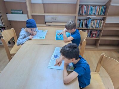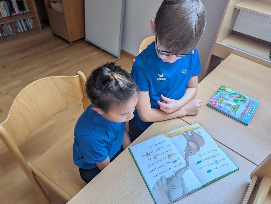 Anfang Oktober gingen die Kinder der 2c in unsere Schulbibliothek, um dort ihre eigenen Bücher zu lesen. Das Ändern des Leseortes gefiel den Kindern und es war schön zu sehen, wie vertieft die Kinder in ihre Bücher waren.